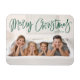 Joli aimant photo de vacances avec "Joyeux Noël" affiché en haut du design dans un script vert manuscrit. Personnalisez l'aimant fantaisiste de Noël avec votre photo horizontale et votre nom de famille.