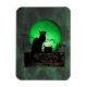 Une silhouette du chat noir de Théophile Steinlen pour le club Le Conversation Noir dans un cadre moderne pour la Saint Patrick avec le chat aux yeux verts, une pleine lune verte, une vigne aux shamrocks et une marmite d'or.