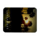 Une belle vue sur les palmiers au coucher du soleil sur l'île de Lanzarote aux Canaries, imprimée sur un aimant souvenir frigo.