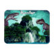 Deux grands dinosaures réalistes s'emparent de cette île flottante tandis que la cascade paisible se jette dans la belle mer au-dessous du ciel orageux, ignorant l'énorme dinosaure qui est bien caché sous l'eau en attendant de venir surprendre tout.