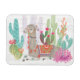 Une douce aquarelle avec un lama qui s'allonge au milieu des cactus. Artiste : Mary Urban