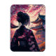Design informatique d'une geisha dans un sort de cerisier. Image d'une femme avec une jolie coiffure de haut et des fleurs dans les cheveux portant un kimono. Le design japonais dans le style AI - Midjourney. En arrière-plan, les bâtiments japonais.
