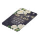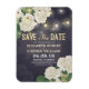 Mariage Enregistrer la Date Magnet Modèles - Elégante Fleurs d'Hydrangée Blanche et Lumières à cordes sur Vintage Navy Blue Floral Linen Arrière - plan. Un design parfait pour votre grand jour. Tous les styles de texte, couleurs, tailles peuvent être modifiés selon vos besoins !