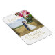 Vos invités aimeront cette beauté naturelle et aquarelle. De la collection Magenta Pink, cet aménagement romantique d'été a un modèle photo en face au milieu. Le texte Love and Thanks entoure la photo, et les noms mariés et les modèles de date sur le devant sous la photo. Un bouquet fleuri en haut à droite présente de multiples couleurs de magenta, de rose et d'ombres de rose, avec de la verdure.