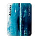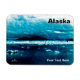 Une image stylisée, en tons bleus, d'une mer polaire froide. La glace embrasse les montagnes côtières. Un texte personnalisable indiquant "Alaska" apparaît également. Ajoutez votre propre texte supplémentaire.