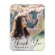 Envoyez une photo personnalisée et élégante, merci carte magnétique à votre famille et à vos amis pour votre diplôme. Ce modèle de design présente votre photo et ci-dessous en écriture noire manuscrite il dit, "Merci" avec votre nom et année à personnaliser. Conçu par l'artiste ©Susan Coffey.