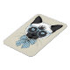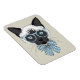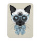 Ce design présente un chat siamois habillé d'une paire de lunettes bleues et d'une cravate arc à damiers.