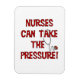 A stéthoscope et red text nurse design that reads Nurses Can Take The Pressure ! Nurse T-shirts, bags, mugs, cards, stickers, and more for nurses and nurse aides.