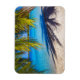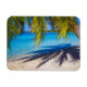 Ombres d'un palmier sur la plage de Takapoto, une île de l'atoll de Tuamotu en Polynésie française.