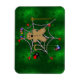 Pauvre petit gars en pain d'épices. Il est coincé dans une toile d'araignée décorée d'ampoules de vacances, de lumières et de sprigs de saint. Et maintenant une araignée noire se prépare à le dévorer.