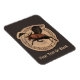Un timbre en cuir portant le logo du mythique Flying Moose Aviation à Talkeetna, en Alaska, porté par les pilotes de brousse de la compagnie. Comprend un orignal ailé superposé sur un cercle avec le texte "AVIATION DE MOOSE VOLANT", "TALKEETNA, AK" et "ESTD 1957". Ajoutez votre propre texte supplémentaire. Vols, débarquements de glacier, cargaison, charters de chasse et de pêche. Nous volons, dites-nous où vous voulez aller.