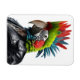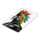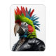 Funny Punk Rocker Parrot avec coiffure mohican portant une veste en cuir.