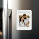 Célébrez votre premier Noël en couple avec notre aimant photo Marié et brillant! L'aimant présente "Marié & Lumineux" dans un script moderne vert et écrit à la main. Votre photo de mariage est affichée avec une bordure blanche rugueuse. Personnalisez l'aimant en ajoutant un message d'accueil personnalisé avec vos noms ci-dessous.