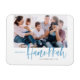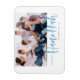 Bonne Hanoukka ! Envoyez des voeux de vacances à vos proches avec cet aimant Happy Hanoukka écrit à la main. Il dispose de pinceau bleu calligraphie moderne. Personnalisez en ajoutant une photo, des noms, une date et un message. Cet aimant photo festif en calligraphie bleue est disponible en d'autres couleurs et produits.