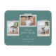 Photo aimable sentiment instantané aimant. Caractéristiques, 3 photos encadrées avec accents de ruban lavi style scrapbook, deux lignes de texte modèles pour votre message, noms et année avec détail coeur en blanc sur l'arrière - plan couleur bleu marine.