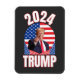 Le président Trump Magnet. Le président Trump se tient face au drapeau américain. Les lettres et les chiffres sont indiqués en rouge.