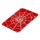 La toile d'une araignée se forme dans un vide audacieux de couleur rouge sang.