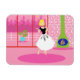 Ce Retro In the Pink Flexible Magnet ressemble à une scène d'une comédie romantique des années 60. Le design minimaliste montre une femme sophistiquée dans son appartement penthouse ultra kitsch et ultra rose. La chambre est ornée d'un mur en briques roses avec des lignes de grout blanc. Devant le mur, une cheminée verte à cônes avec feu rugissant. A travers des portes coulissantes en verre, nous voyons un balcon rose avec une balustrade blanche. Un plante tropical luxuriant se trouve dans un aqua fleuri. La vue depuis le balcon est de la silhouette d'un horizon de grande ville. Bien sûr, la silhouette est rose ! Une lune jaune croissant est dans le ciel. Posé sur un rosé chaud, le tapis de shag dans l'appartement est la principale dame de ce design. En contraste saisissant avec le monde rose qu'elle a créé, la belle blonde porte un raccord de forme, noir, col scoop avec une longue jupe blanche flarnée et ornée de motifs en plumes noires. Avec ce design, vous pouvez aussi regarder le monde à travers des lunettes de couleur rose!