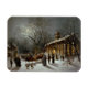 Vintage Noël de la veille montrant une famille victorienne entrant dans l'église sur un lundi de noël, la neige sur le sol et un ciel d'hiver illuminé par la lune.