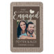 Brun brun rustique aimant réfrigérateur photo avec le texte "First Christmas fiancé" décoré d'un coeur mignon. Personnalisé avec une photo de la mariée et du marié à être et leur date fiançailles.