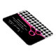 Attirez de nouveaux clients et clients avec cet aimant carte de visite de salon de coiffure à la mode pour un coiffeur professionnel styliste avec un motif moderne et tendance noir et blanc, agrémenté d'une paire de ciseaux chic de coupe de cheveux roses. Ce carte de visite magnétique mignon et girly peut être personnalisé en ajoutant le nom du salon de coiffure ou de la boutique de beauté et les coordonnées.