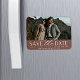 Un aimant de date moderne pour enregistrer la photo de votre fiançailles à fond plein à orientation horizontale ou paysagère préférée. "Enregistrer la date" apparaît sous votre photo en bloc blanc et en lettres de script, ainsi que vos noms, date mariage et emplacement du mariage. Utilisez la ligne de texte supplémentaire pour partager votre site Web mariage ou des détails supplémentaires.