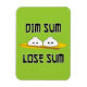 Une image de dessin de deux boulettes Dim Sum, une heureuse triste, sur une assiette avec des baguettes et l'expression "Dim Sum, Lose Sum" La couleur arrière du sol peut être changée, cliquez sur "Customiser", puis cliquez sur "Modifier" puis "Arrière - plan" et choisissez la couleur.
