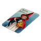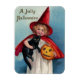 Cette image adorable et vintage d'une petite sorcière, tenant son chat noir et un citrouille, avec les souhaits pour "A Jolly Halloween", est présentée sur cet aimant. Faites un grand cadeau pour les fêtes d'Halloween, les anniversaires ou pour décorer votre maison!