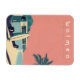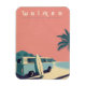 Camper van de style vintage et planches de surf sur Waimea Bay sur la rive nord d'Oahu, Hawaii, plage avec palmiers et sable garé contre un ciel étoilé rose