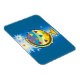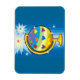Ce design présente notre globe ou notre terre sur un stand. Le globe est coloré de couleurs pastel rayées le long du globe. Sur les rayures sont des coeurs colorés de couleurs pastel. Le fond bleu représente le ciel. Le ciel explose avec des étoiles colorées qui explosent au-dessus du globe. Ces magnets sont disponibles dans des styles et des tailles variés.