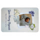 Le design charmant présente un beau style scrapbooking dans des tons bleu clair et turquoises apaisants qui évoquent un sentiment de chaleur et de tranquillité. Au coeur du design se trouve une photo bébé personnalisable encadrée par une élégante bordure bleu clair. Les fleurs délicates et l'illustration adorable des empreintes de bébé ornent le bord supérieur du cadre, ajoutant une touche de lucidité au design. Le fond du cadre présente des bottes de bébé très détaillées et un casquette de bébé douillet, symbolisant l'amour et le soin qui vous attendent dans votre précieux lot de joie.
