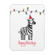 Nouveau design moderne et non traditionnel pour les vacances 2020 dispose d'une illustration fantaisiste en zèbre avec chapeau de Père Noël rouge, une chaîne de lumières de vacances et texte personnalisable "Joyeux Vacances"