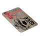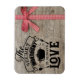 Küchenmagnet mit typografischem Stil zitieren "Der Geheimtipp ist immer Liebe" auf rustikalem Holzhintergrund mit rotem Gingham-Band