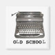 Fotografie der manuellen Schreibmaschine auf Weiß (anpassbar( Hintergrund mit den Worten "Old School" gedruckt unten im klassischen Schriftart Schreibmaschine.