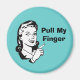 Un aimant humoristique, avec des dessins animés en noir et blanc rétro d'une femme du style des années 50 pointant son doigt, contre un arrière - plan d'aqua. Le texte en noir dit : Tirez mon doigt. Grand aimant pour la maison ou le bureau. Customisez le texte pour lire ce que vous voulez. Fait un grand cadeau.