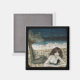 Un tableau texturé d'une sirène qui lézarde au soleil sur une plage.