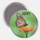 3" round magnet with Monarch butterfly on Zinnia flower with the exhortation JOY!