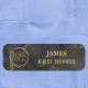 Mitarbeiter Magnetic Safety Button Gold Custom Logo Name Tag. Berufliche Magnetname-Tag: Ihre Marke, Ihre Identität. Ideal für Unternehmen, Konferenzen, Gastfreundschaft, Gesundheitswesen und Einzelhandel. Erstellen Sie eine einheitliche, berufliche Teamidentität mit unseren benutzerdefinierten magnetischen Namensschildern. Name-Tag verfügt über einen schwarzen und goldenen Marmor-Hintergrund texturiert mit Gold Schriftart. Passen Sie es mit Ihrem Firmenlogo, Mitarbeitername und Jobtitel an. Das Copyright steigt in Stildesigns.