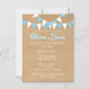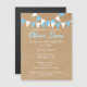BÉBÉ BUNTING BLUE BAPTISM NOËL INVITATION. Cette jolie invitation au baptême, au baptême ou à la première communion rustique présente un arrière - plan de style papier kraft, un bunting bleu et blanc, et une superbe calligraphie de scénario à l'ombre d'une goutte bleue. Conçu par Pure Piglet© à l'adresse www.zazzle.com/purepiglet*.