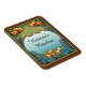 Art étiquette Art déco avec lettres de script, avec art vintage de branches de pommes et poires sur un arrière - plan vert et bleu.