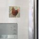 Ces magnets présentent une photo d'un poulet courant autour d'une cour de grange. Cette image est également disponible sur les cartes et timbres-poste correspondants. Photo ©Archie Patenaude