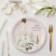 Aquarellbraut in Hochzeitskleid und magnolischen Blume. Wählen Sie Haarfarbe und Hintergrundfarbe, um Ihre Veranstaltung zu personalisieren.
