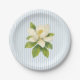 Magnolia Flower Custom Wedding Blue Stripe Pappteller