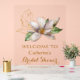 Watercolor Magnolia Lila florales Brautparty Willkommen Akryllische Hochzeitssignen bietet elegante Aquarellfarben magnolia Blume in sanften Lavendel und lila mit grünen Blätter auf einem weißen Hintergrund mit goldenem Akzent mit Ihrem Brautparty Willkommenszeichen unten. Für Sie entworfen von Evco Studio www.zazzle.com/store/evcostudio