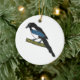 Drawing of a Magpie with the distinctive blue flash of color, and the white markings - perched on a branch. A clever bird with much folklore referring to it. A fun design for Magpie fans.