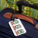 Das Gepäckanhänger für Mahjong-Liebhaber enthält Text und Kacheln für jeden Anzug "Dot", "Crak" und "Bam"