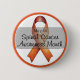Dieser 2,25" runde Knopf ist ein mutiger Weg, den Spinalkrebs-Aufklärungsmonat im Mai zu erkennen und so das Bewusstsein und die Unterstützung für die Betroffenen zu verbreiten. Oben wird "May" in einem starken, kühnen Schriftart angezeigt, um sicherzustellen, dass die Nachricht auffällig ist. Unten steht "Spinal Cancer Awareness Month", elegant geschrieben in fließender Kursiv, symbolisiert Stärke, Hoffnung und Fürsprache. In der Mitte steht ein leuchtend orangefarbenes Sensibilisierungsband, das den Kampf gegen den Wirbelsäulenkrebs und den Drang nach Forschung und besseren Behandlungen darstellt. Ein fett orangefarbener Rahmen umrahmt den Knopf und schafft ein glänzendes und auffälliges Design. Tragen Sie diesen Knopf stolz auf Ihre Jacke, Tasche oder Lanyard, um das Bewusstsein zu schärfen, Forschungsbemühungen zu unterstützen und Solidarität mit den Gegnern von Wirbelsäulenkrebs zu zeigen. Eine kleine aber sinnvolle Art, etwas zu verändern!