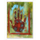 Peinture d'une main rouge avec des méridiens abstraits d'acuponcture.
