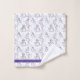 Des couleurs violettes et bleu clair sont utilisées pour faire ce snowman ensemble de serviettes de bain sans couture. Illustration tirée à la main d'un mignon bonhomme de neige avec chapeau, foulard et nez de carotte. Il se tient sur une colline de neige près d'un sapin de Noël avec une étoile. Le texte "Joyeux Noël !" est inclus en motif sur une bannière à rayures violettes et blanches.