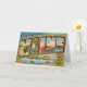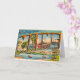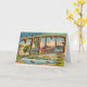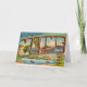 Eine Vintage, farbenfrohe Postkarte aus dem Staat Maine, die auf eine Notenkarte umgelegt wurde.